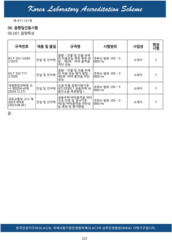 KOLAS 공인시험기관 인정서